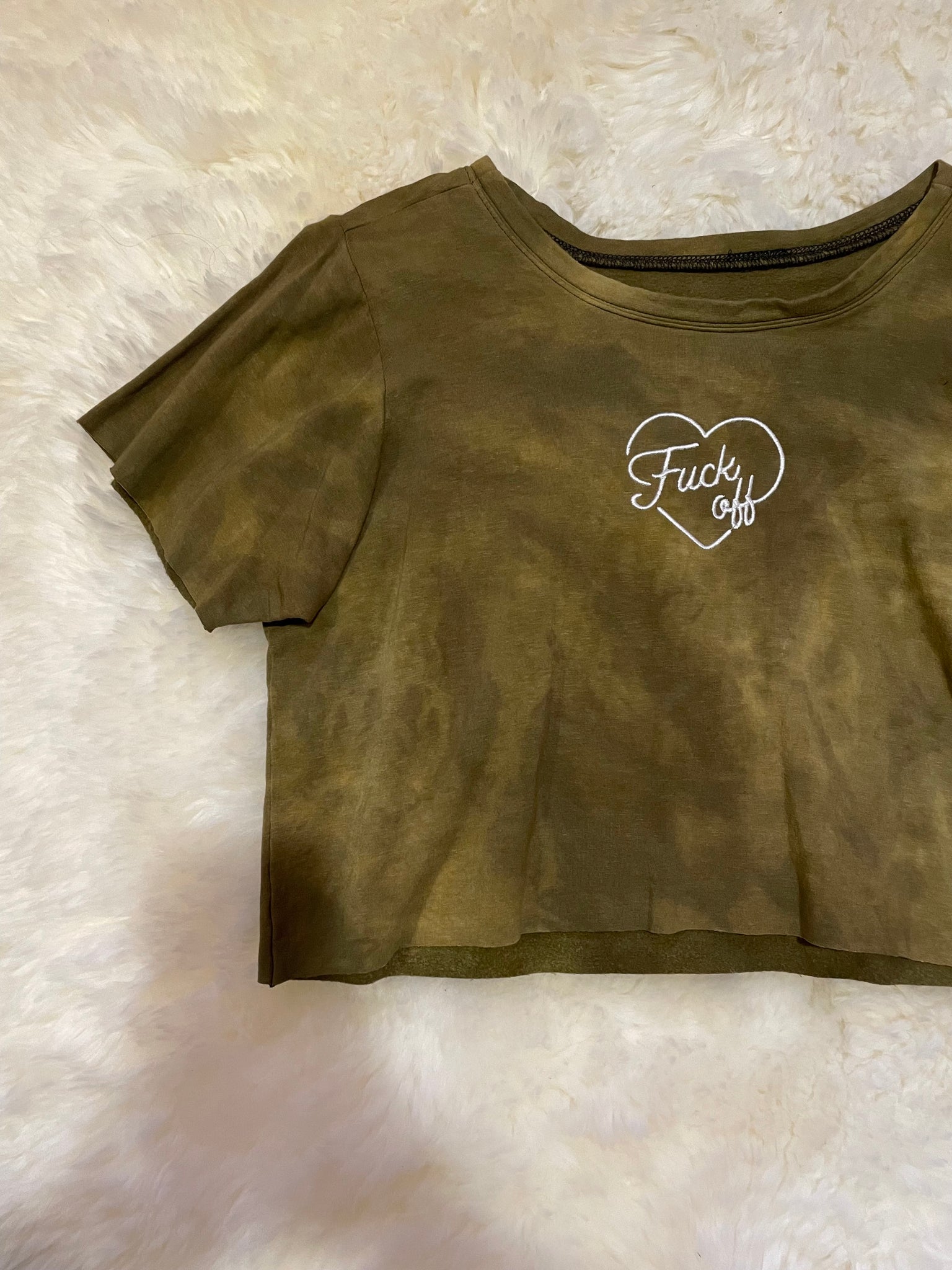 XL/XXL Hemp Fleece “Fuck off” Embroidered Short Sleeve Crop Top Wazil_ Collab